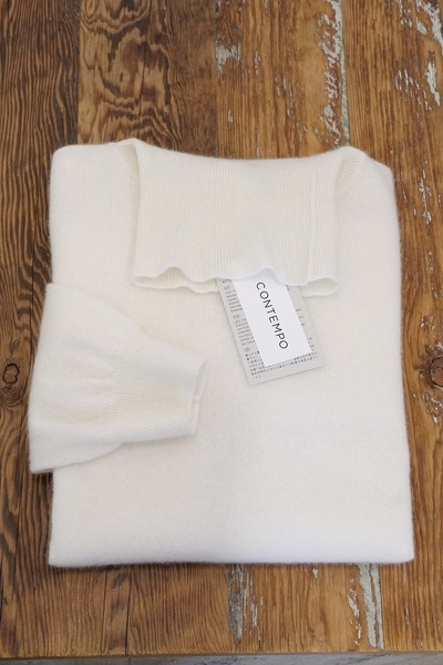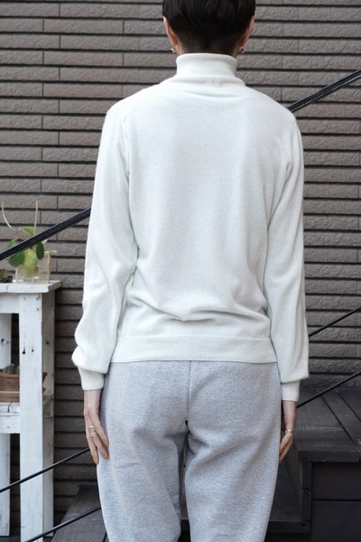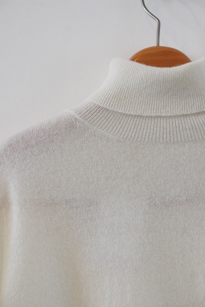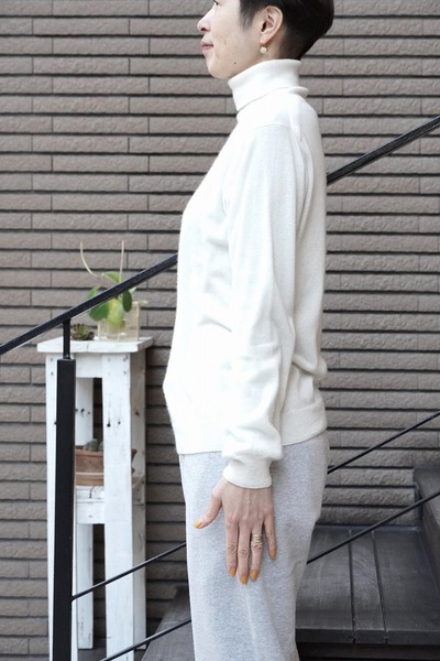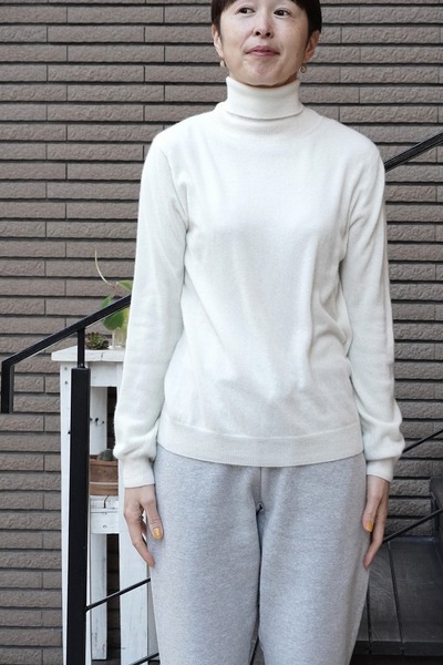 春先でも充分に着られる感触と明るいカラーで、タートル部分も優しい肌触りでふんわりと保温されます。
