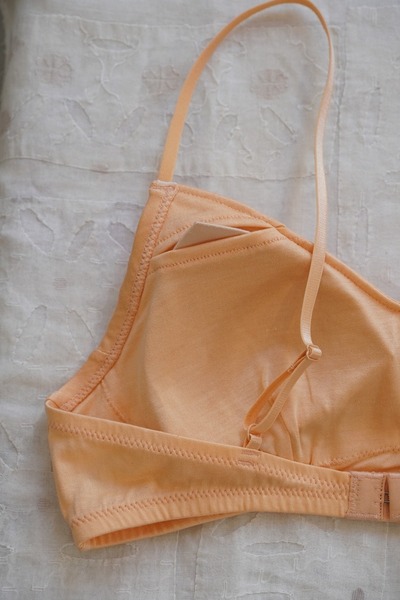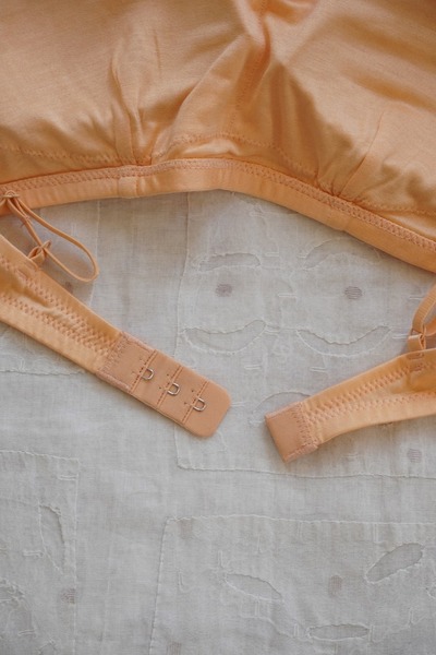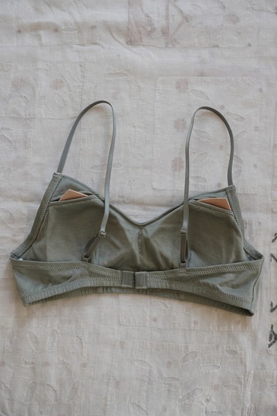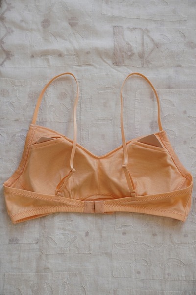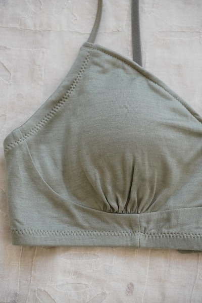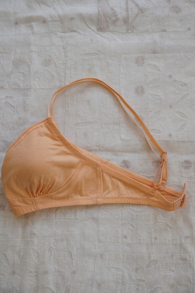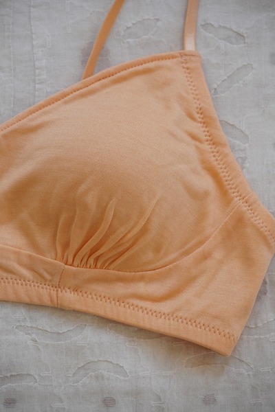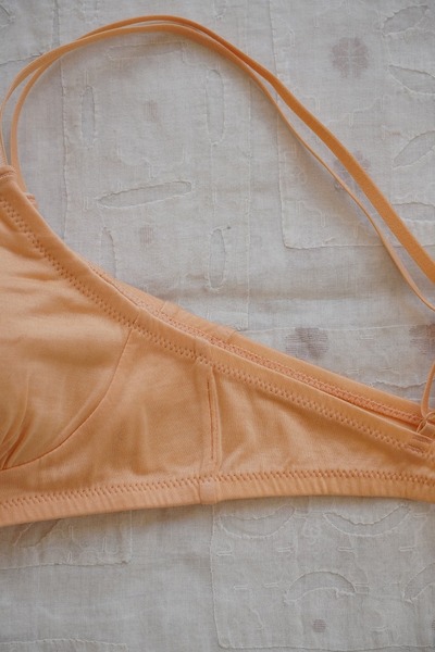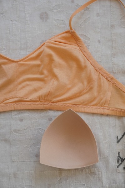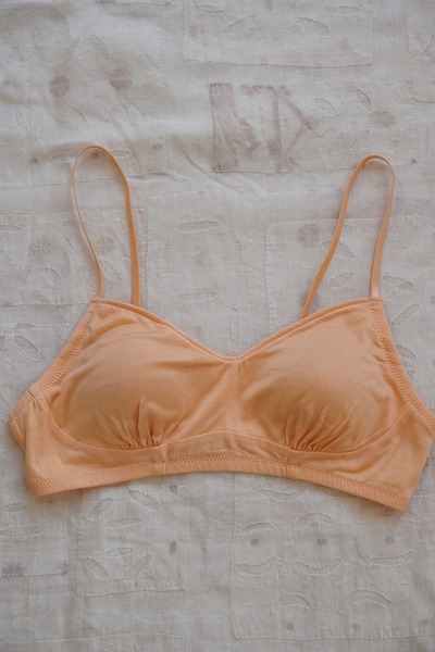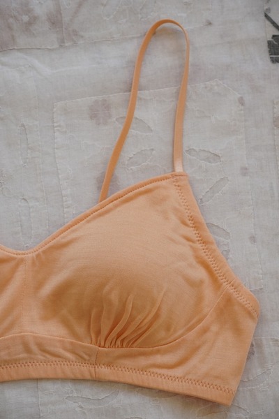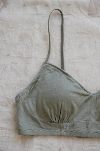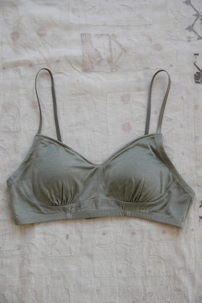 化学繊維やワイヤーを使わずに、ほどよいホールド感のあるブラジャーに仕立てました。