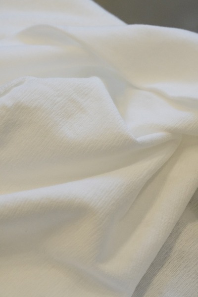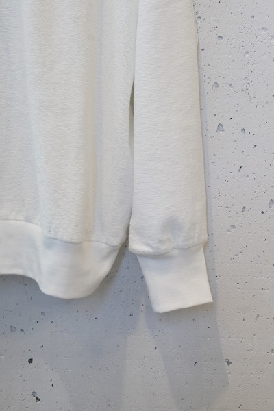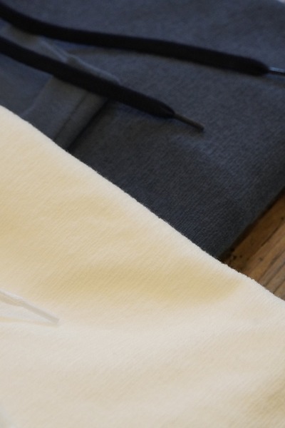 通常のパイルよりループがとても小さく、間隔が空くように柄を設定しているため、嵩張らず薄手に仕上がりました。コンパクトヤーン(毛羽が少ない糸)と通常の綿糸を組み合わせて使うことで