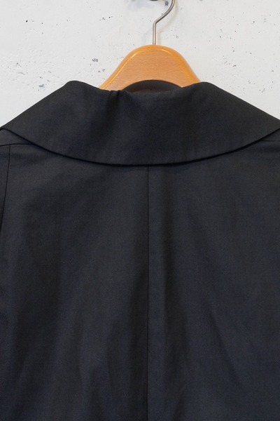 襟元のチンタブをはめて、衿の変化を楽しんでください。アームホールはゆったりしています。ベルトルー