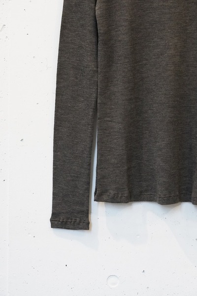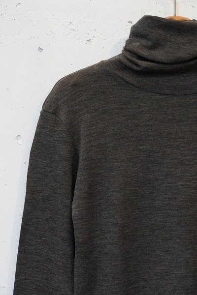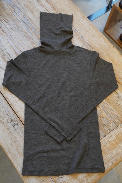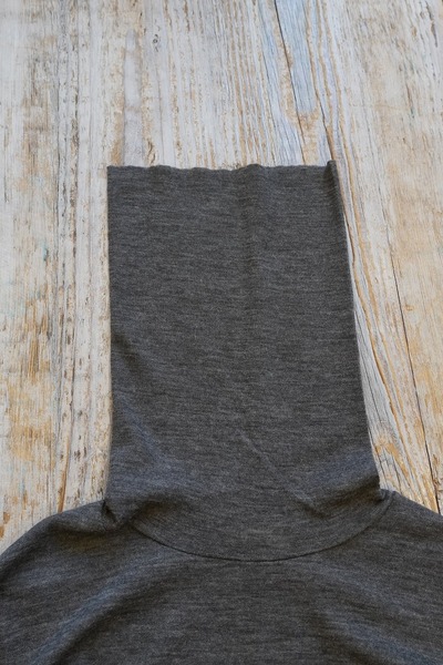 100%オーガニックメリノウール素材で伸縮性があり繊細で柔らかく、しなやかな肌触りが特徴。保温性と通気性に優れています。ネック部分は長めに設定されていますのでそのままクシュっとさせて着ていただくのがおすすめです。