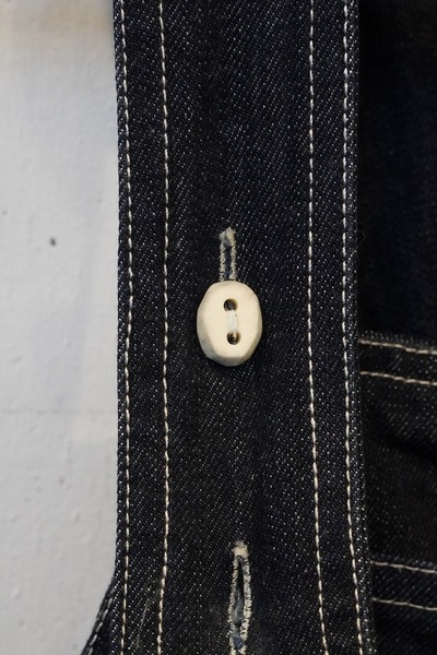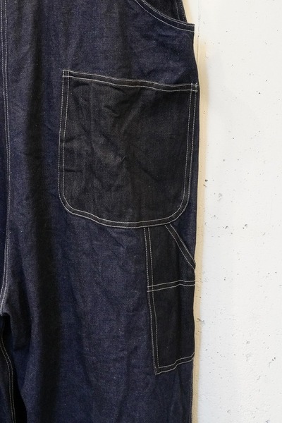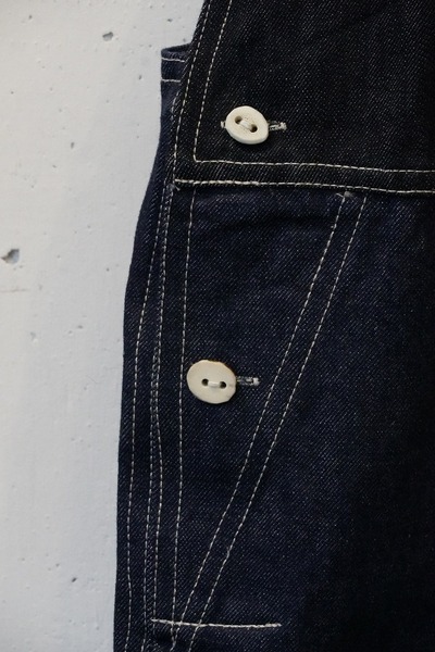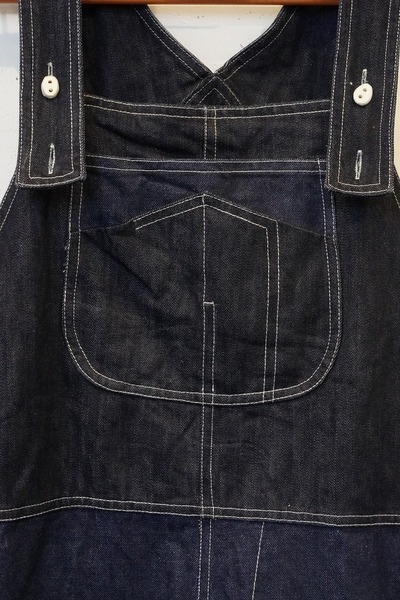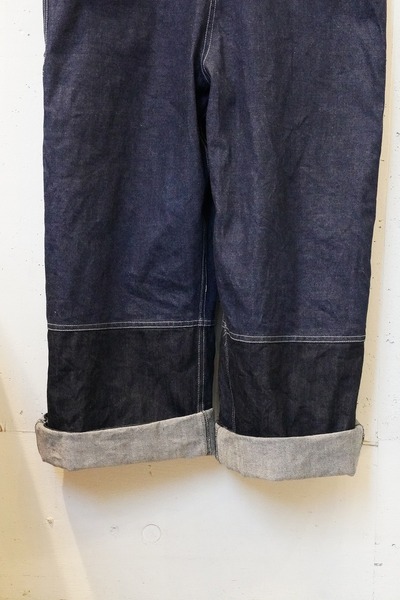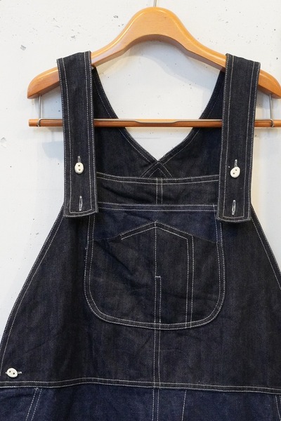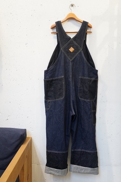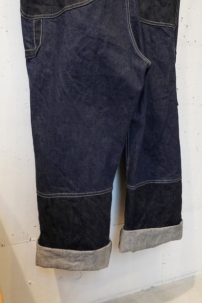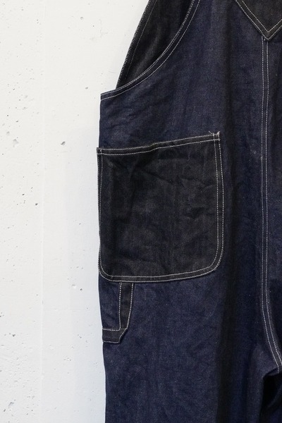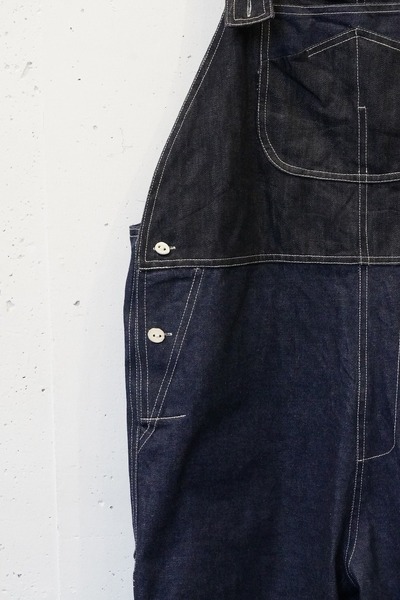 2種類のヴィンテージデニムのパッチワークで作られたオーバーオールのご紹介です。