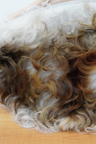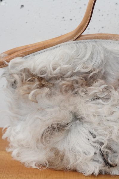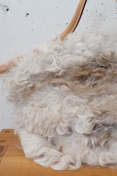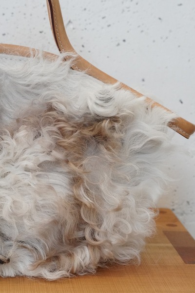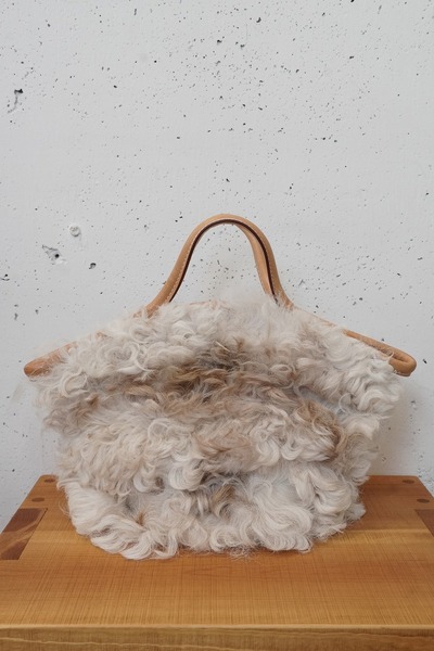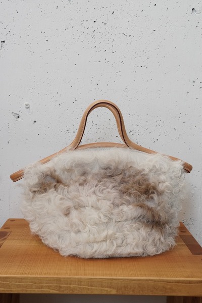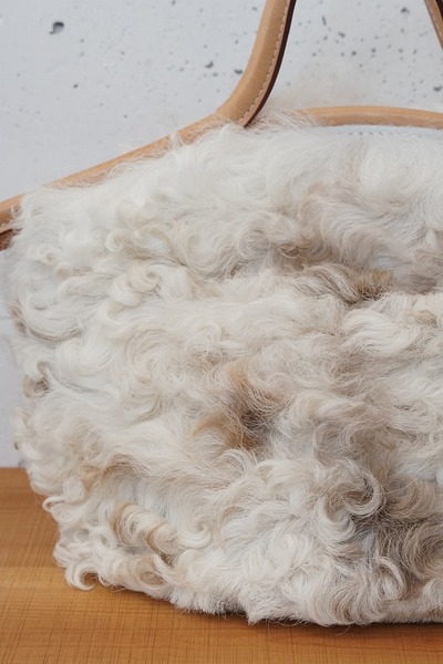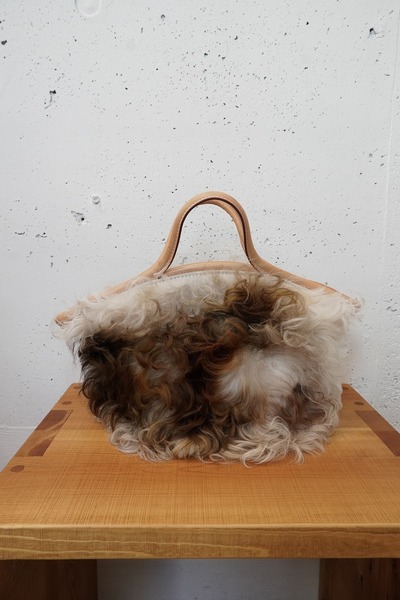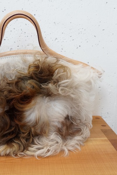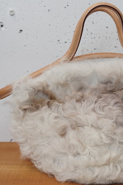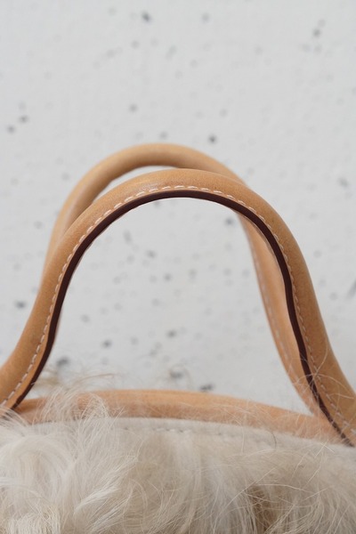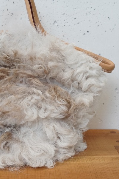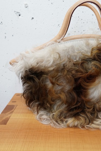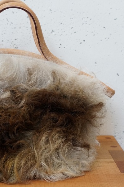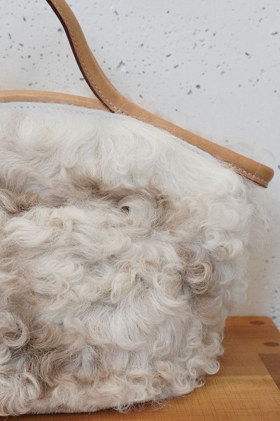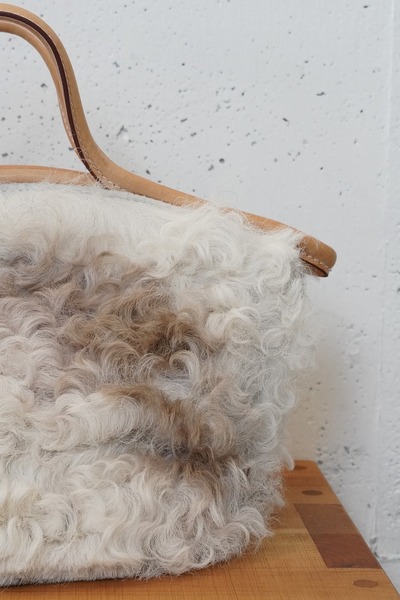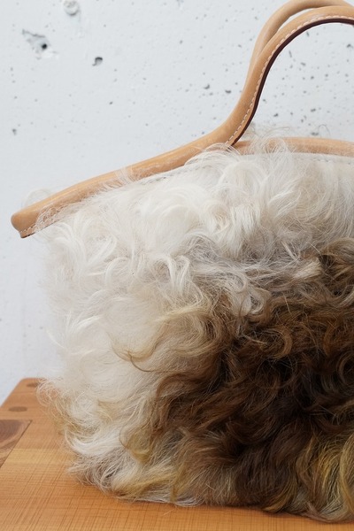 手に取られた方はみなさんの第一声は〝可愛い‼〟です(^^)毛足が長めだったり、少し短かったり、クルリンとしていたり、毛の色が濃かったり、薄かったり♪色のグラデーションが美しく、360°どこからいても可愛いです。思わず撫でたくなります。なめしのレザーの持ち手や底の部分は使い込むほど滑らかな艶を帯び、経年変化を楽しんでいただけます。