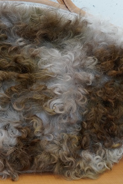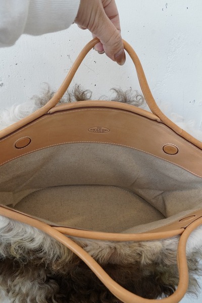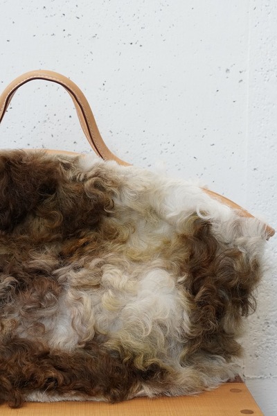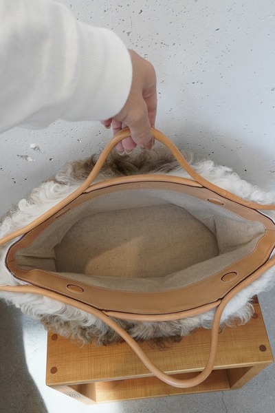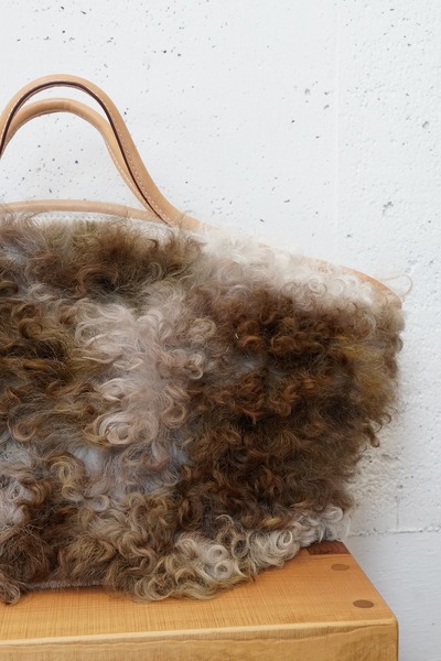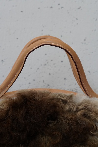 手に取られた方はみなさんの第一声は〝可愛い‼〟です(^^)毛足が長めだったり、少し短かったり、クルリンとしていたり、毛の色が濃かったり、薄かったり♪色のグラデーションが美しく、360°どこからいても可愛いです。思わず撫でたくなります。なめしのレザーの持ち手や底の部分は使い込むほど滑らかな艶を帯び、経年変化を楽しんでいただけます。