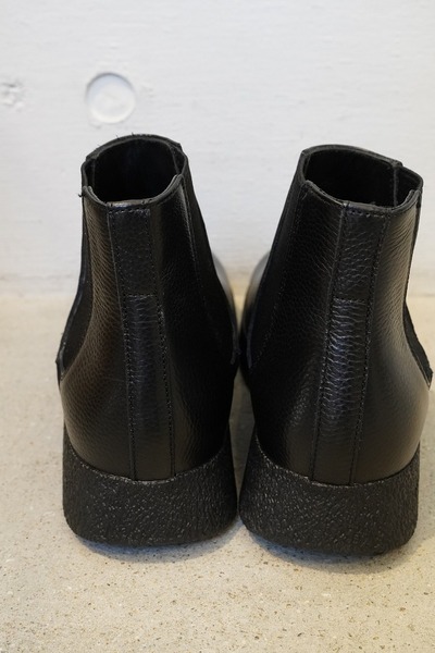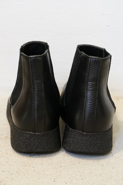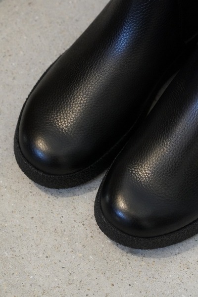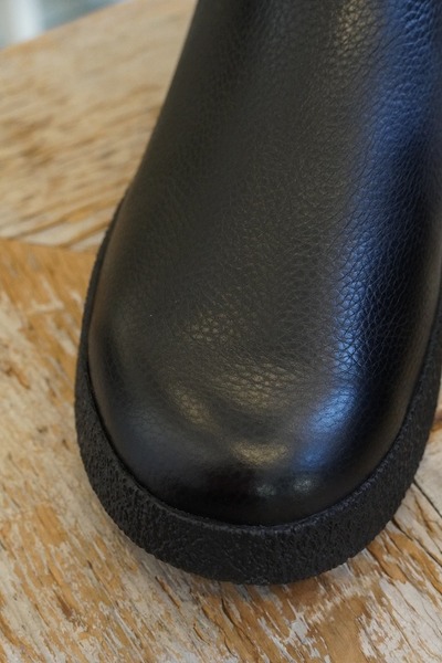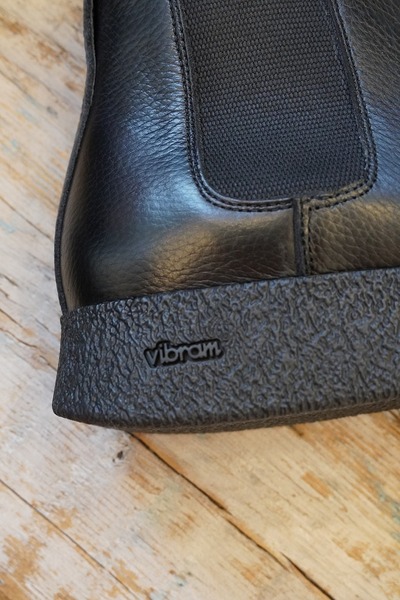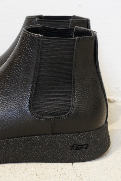 デザイン不要な切り替えを無くしたミニマルなフォルムが特徴のサイドゴアブーツ。全体的にゆとりを持たせたラストを用いることで、ラグジュアリーなフィッティングを実現。ソールにはクレープ柄がリアルに再現された Vibram社製 “Crepe” を採用。このソールの特徴は、内側に発砲ウレタンを使用することによって軽量化され、クッション性が向上している点です。オーセンティックでありながら進化を遂げた、定番にふさわしい一足です。