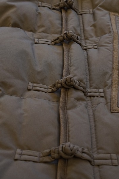 ダウンと思えない軽さと保温性、あたたかく包み込むウェザークロス。風を通さずとても暖かいです。ごわつきもなく、動きやすく、気軽に羽織っていただけます。身幅や肩周りもゆったりとしていて、長めの着丈はヒップラインまで包み込むようなシルエットです。ポケットはジップポケットとフラットポケットと収納力も抜群。荷物を持たずに出かけられます(^^)シンプルながらも洗練されたデザインで、チャイニーズボタンがアクセントに。上質な日本製に拘った1着です。ニットやスウェットの上から羽織ったり、ゆったりとしたアウターの下にインナーダウンとしても着用していただけます。