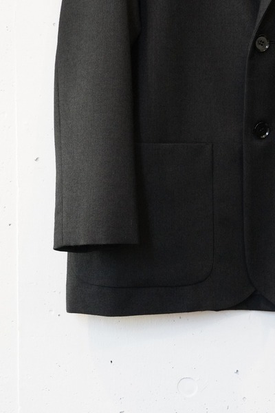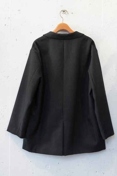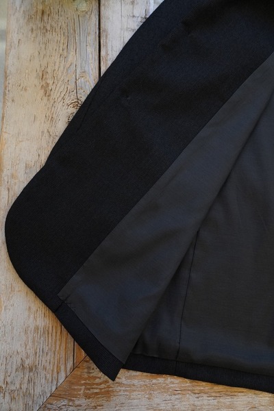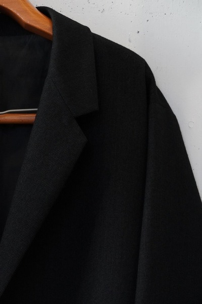 エシュペーよりシルクストライプウールジャケットのご紹介です。シルクの細い糸で施されたストライプはさり気ない光沢感があり、上品な大人な印象。ウール素材ですが、さらっとしていて軽く、暖かい。ユニセックスサイズで女性の方ですと着丈はやや長めで身幅も程よくゆったりしています。ハリ感があり、シルエットも綺麗にまとまります。同素材のスラックスとのコーディネートもおすすめです。その他にもデニムやワンピースと合わせたり、幅広いコーディネートで楽しんでいただけます。