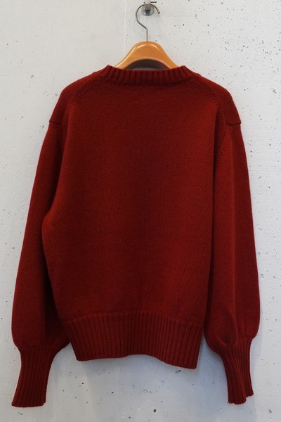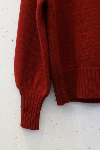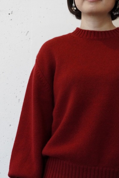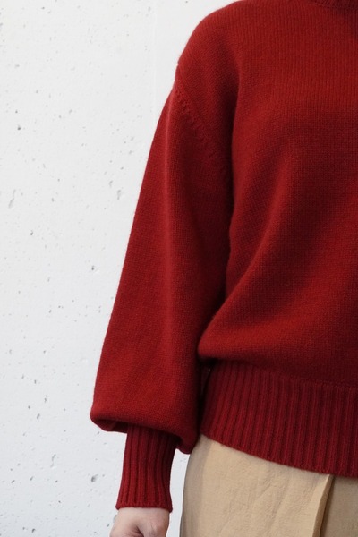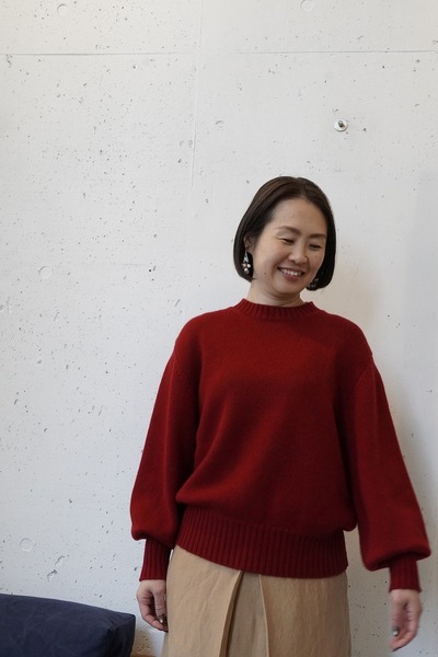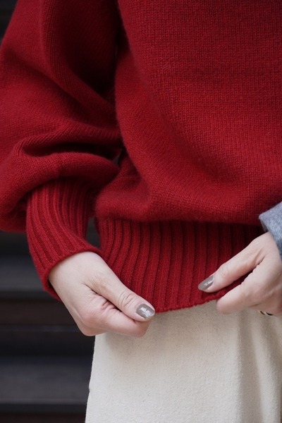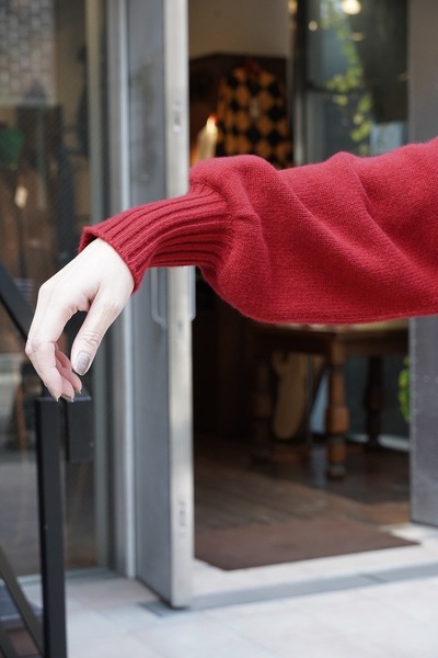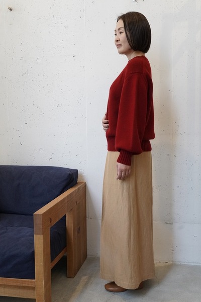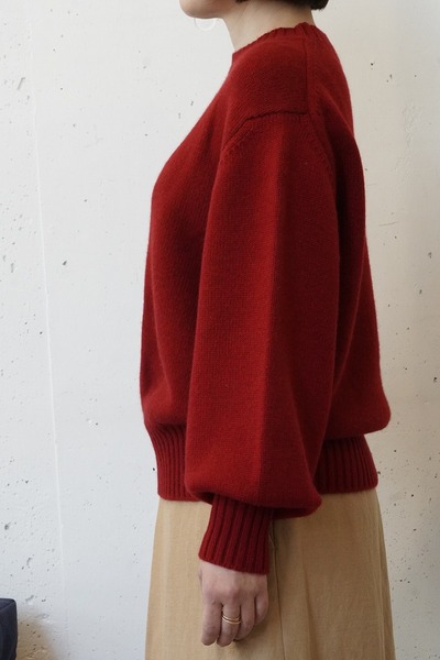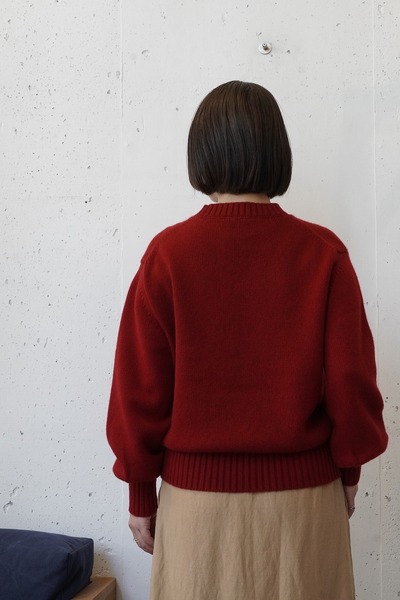 身幅とアームホールはゆとりを持たせて、身体を締めつけず、着る人の動きに柔らかく寄り添う、リラックスしたサイズ感に。ふっくらとボリュームを持たせた袖は長めのリブできゅっと締めて、パフスリーブのふくらみを強調するデザインです。リブ編みはざっくりとした編み方にすることで、カジュアルな雰囲気を持たせました。むっちりと程よい厚みのあるニットは、外気をしっかりとガードしながら内側の暖かさを守ってくれるような安心感を感じられます。