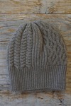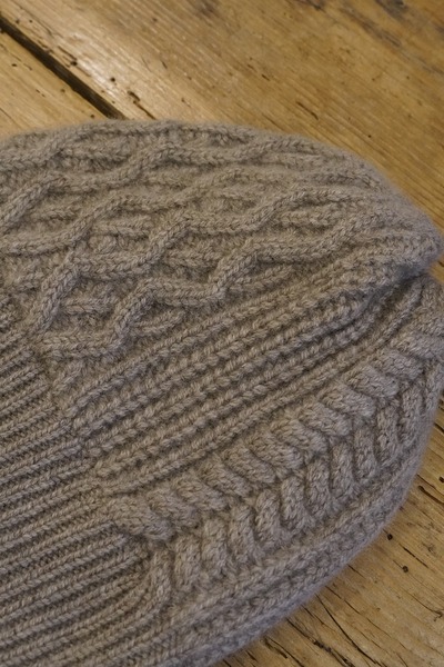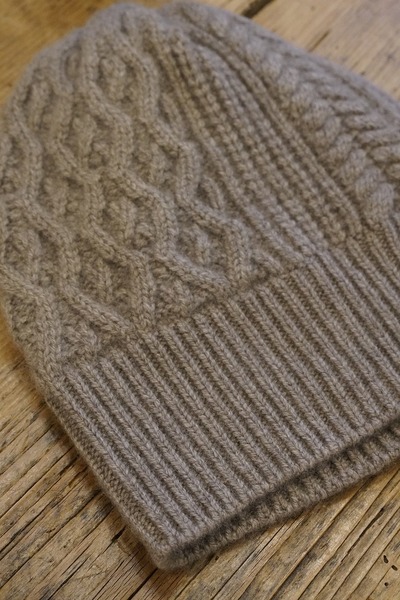 被り口がリブ編みで伸縮性があり、トップはゆったりしています。深めに被ったりリブの部分を一折したり、楽しんでいただけます。上質なカシミア100%使用され肌あたりは柔らかく、とても暖かく寒い冬に重宝するアイテムです。