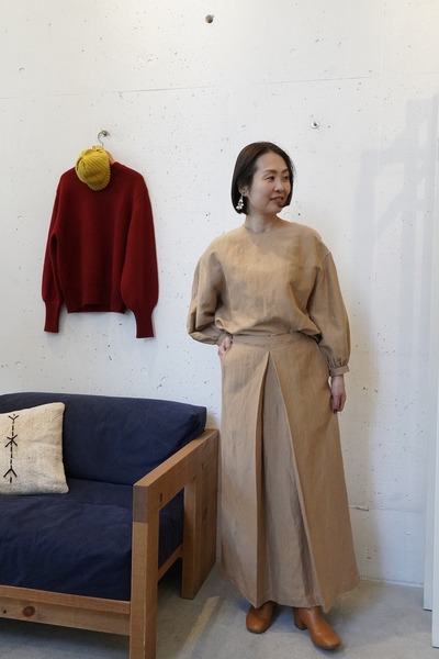 同生地でお作りしているpuff sleeve pulloverとのセットアップもおすすめです。