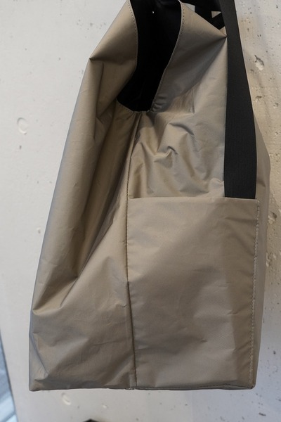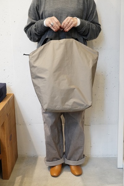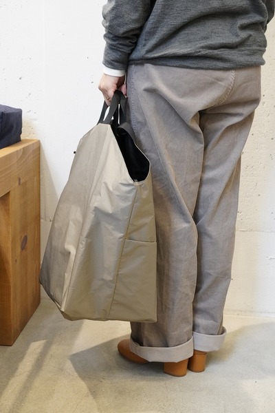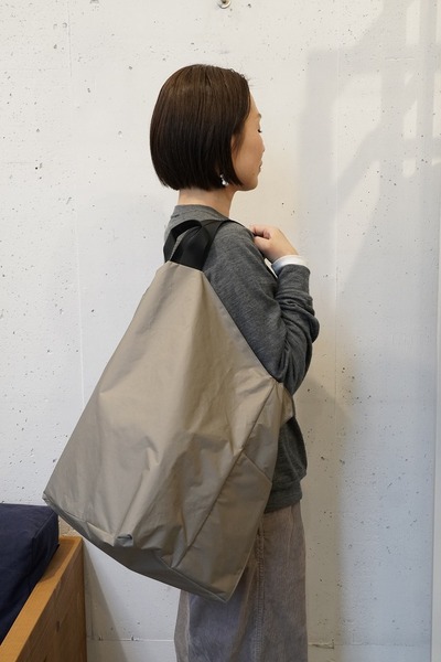 軽量で大容量、シンプルなデザインながらも実用性を備えたバックです。高密度に織られた丈夫なポリエステル素材で、日常使いはもちろん、ご旅行やジムなどに行かれる際など様々なシーンで活躍してくれそうです。お色はブラウンとグレーの中間のトープ。ナチュラルで温かみのある印象でどんなコーディネートでも馴染みます。上品で大人な雰囲気もあります。