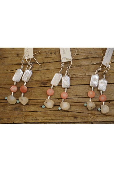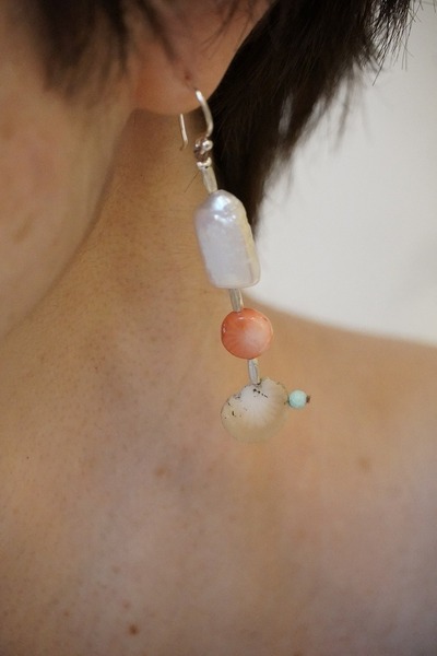 Material : バロックパール、コーラル(染め)、ターコイズ、エチオピアンメタルビーズ、スターリングシルバー