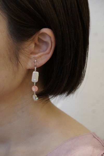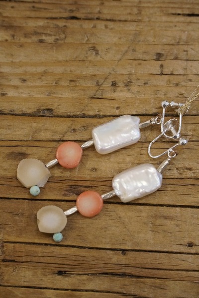 Material : バロックパール、コーラル(染め)、ターコイズ、エチオピアンメタルビーズ、スターリングシルバー