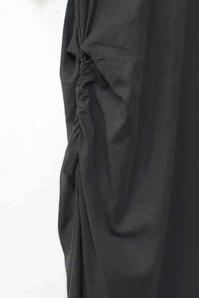 一見タイトに見えますが着てみると若干横伸びする生地が動きやすく、腰のあたりに寄せられたシャーリングが身体をやさしく包み込んでくれます。