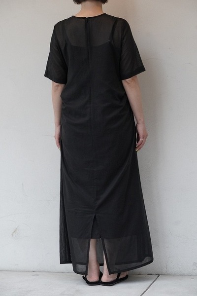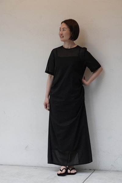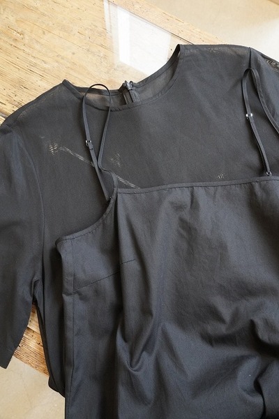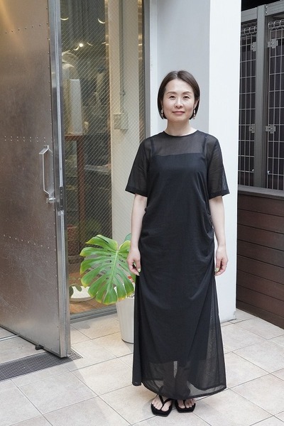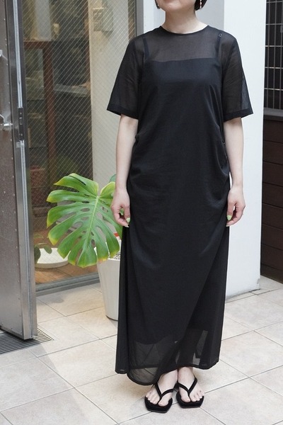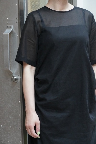 インナーのコットン生地のキャミソールドレスが上品な透け感で、肌の見え方がとても美しく見えます。ちょっとしたお食事会にも、お休みの日にはスニーカーと合わせたりと、日常を楽しく豊かにしてくれる1枚です。