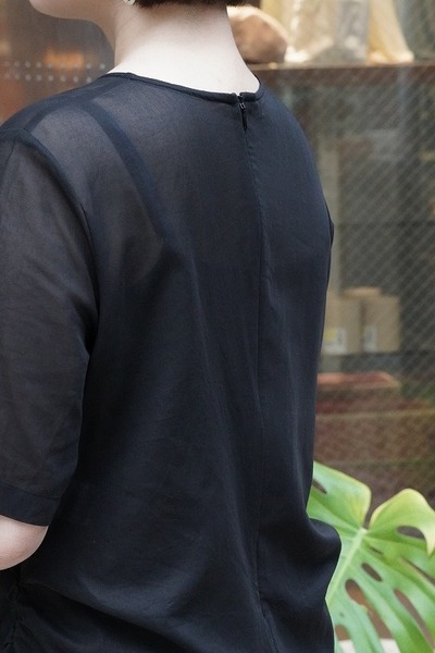 コットン100とは思えないほど横の伸縮がある素材で、強ねん糸の丈夫さと繊細な透け感が